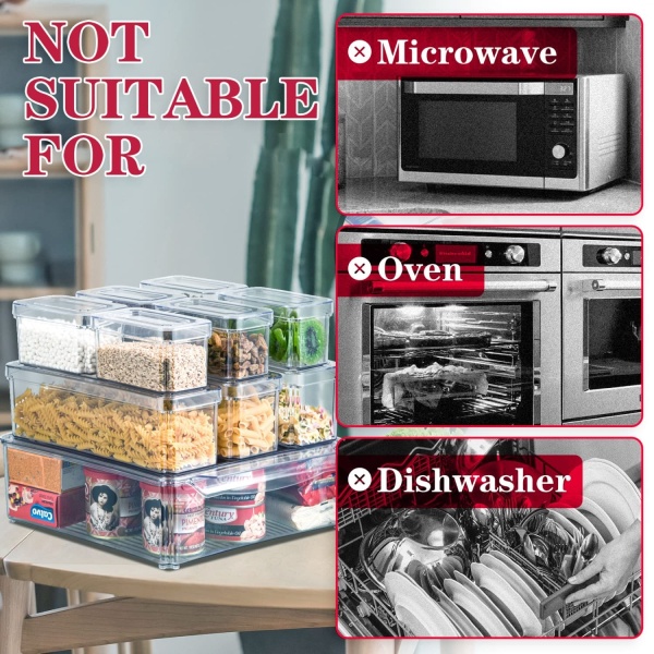 - ★SAFE PACKAGING & NOTICE: Fridge organizer with lid is not for microwave, oven, or dishwasher (It is easy to clean with mild soap and water). We also adopted a brand new packaging, using a 1-inch thick foam-wrapped to protect the fridge organizers.