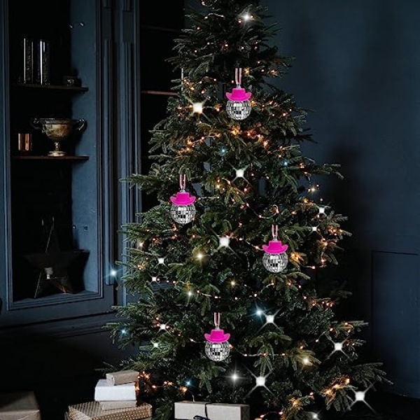 - DISCO BALL CAR ACCESSORY: This disco ball car mirror ornament is consisting of pink cowboy hat and disco mirror ball. When the sun hits the bling Glass ball car accessory, the interior of the car will sparkle, the light reflects in your car will makes you very happy, especially on the way to work.