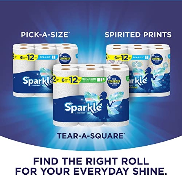 - Sparkle Tear-A-Square Paper Towels are now stronger for everyday messes at a value that’s just right for your budget.