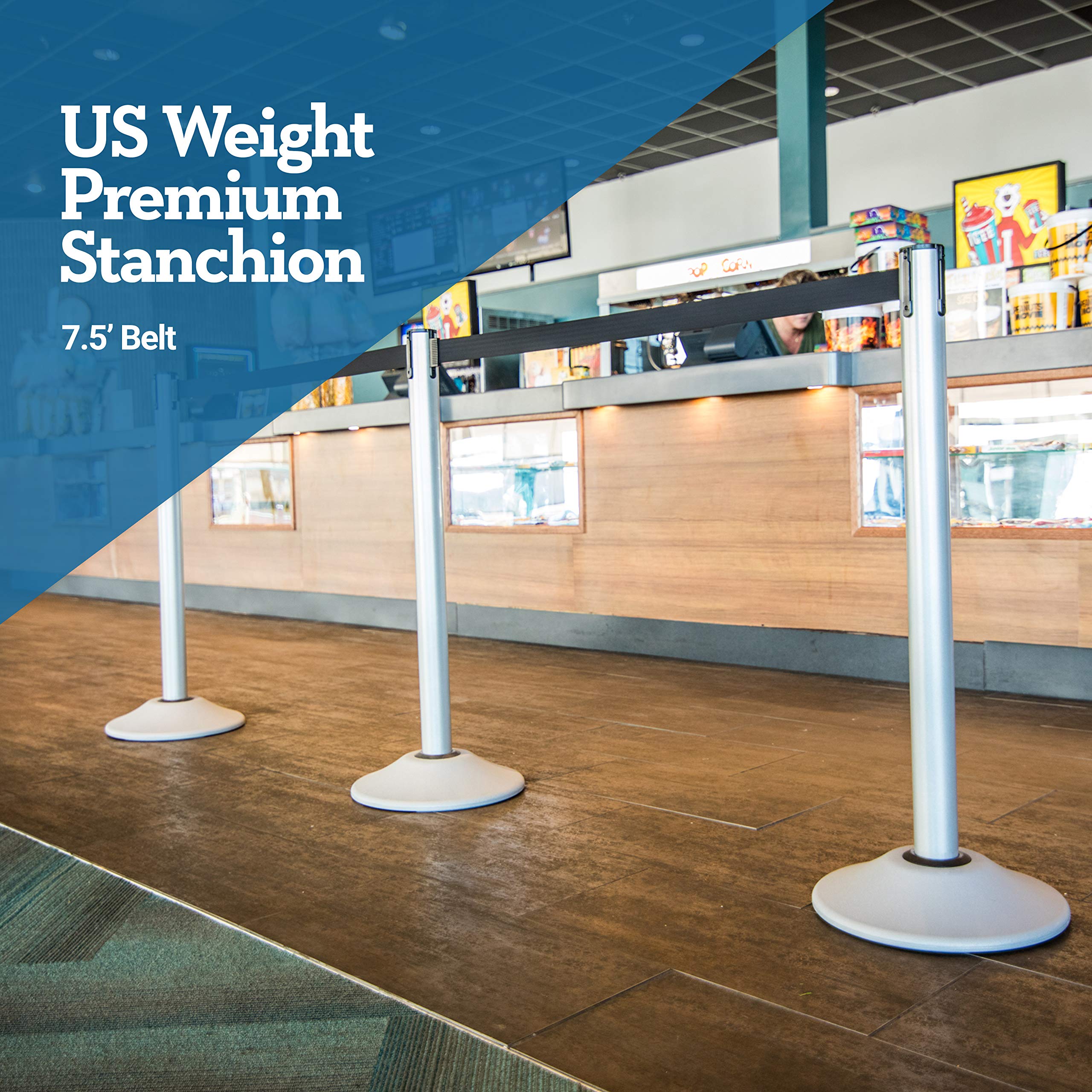 US Weight Heavy Duty Premium Steel Stanchion with 7.5-Foot Retractable Belt (More Colors Available)